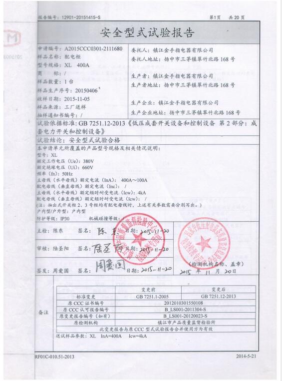 XL 配電柜 (400A) 試驗(yàn)報(bào)告